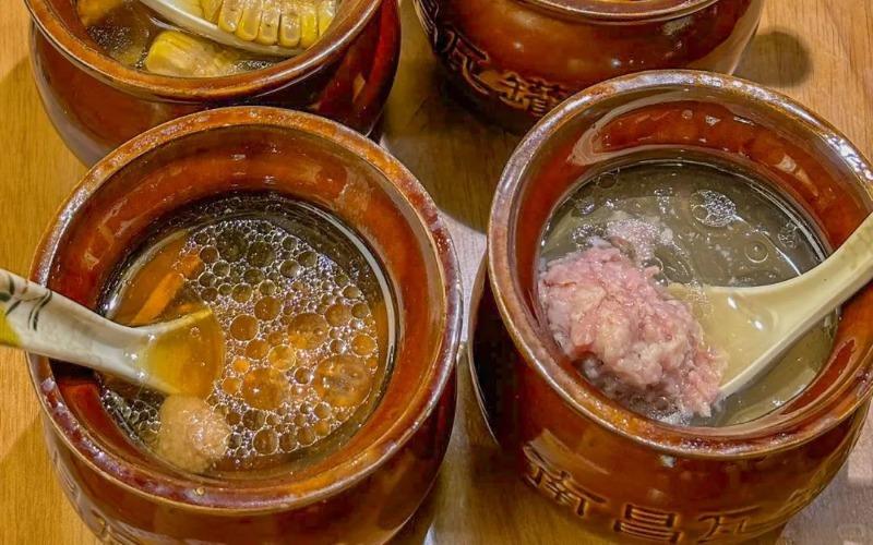 瓦罐汤源自江西民间,距今已有千年历史,是“赣菜一绝”。其核心在于以特质陶罐为器,慢火煨炖,暗合中医“水火共济”的养生哲学。采用透气性佳的粗陶瓦罐,受热均匀且能吸附杂质,使汤色清澈;密封煨制6小时以上,最大限度激发食材本味。精选土鸡、猪骨、菌菇、莲藕等新鲜原料,搭配枸杞、当归等药膳食材,汤头醇厚而不腻,兼具食补功效。炭火或现代恒温煨炉长时间低温慢炖,让胶原蛋白与鲜味物质充分释放,入口绵柔,回味甘甜。