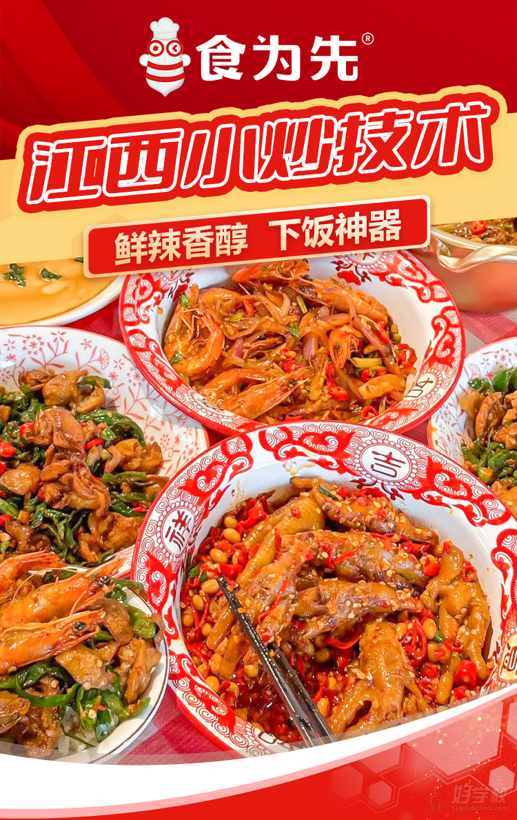 江西小炒凭借新鲜现炒、锅气十足的核心特色,成为深受大众喜爱的农家风味菜系,其以本地山珍河鲜、四时果蔬为食材,现点现做的模式与预制菜形成鲜明反差,烹饪技法简单且风味浓郁、易于标准化,是创业者开店的优质选择。食为先推出的江西小炒家常菜培训课程,专为想掌握这门技艺的学员打造,具体课程信息如下: