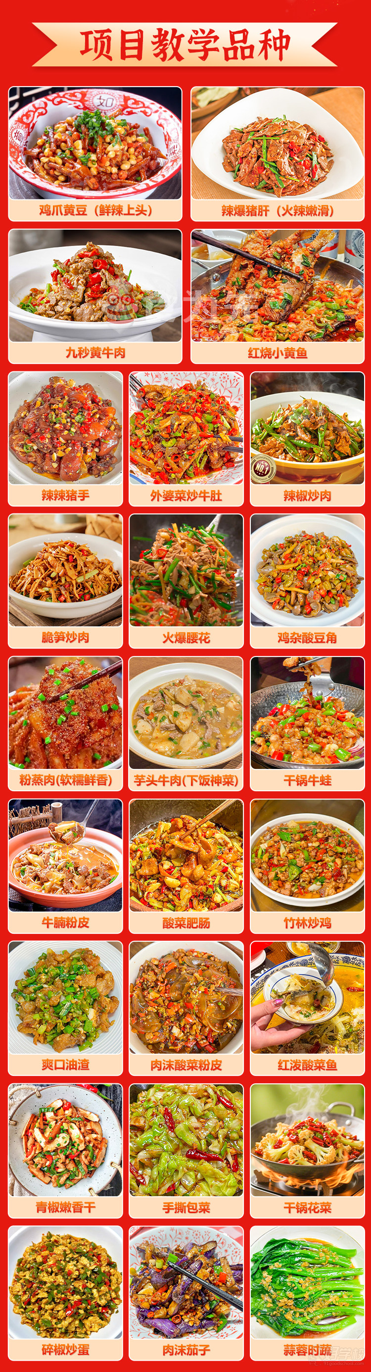 课程涵盖多款经典江西小炒菜品,满足不同口味需求,具体包括: