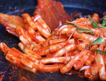 铁板辣年糕是一款家常菜品,制作原料主要有年糕、辣椒酱、胡萝卜等。