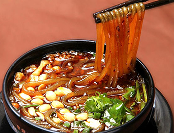酸辣粉起源于四川,是四川省、重庆市、贵州省等地的传统特色小吃,属于渝菜、川菜、贵州小吃。其特点是麻、辣、鲜、香、酸且油而不腻。酸辣粉主粉由红薯,红苕,豌豆按比例调和,然后由农家用传统手工漏制而成。酸辣粉源于西南民间,取食材至当地手工制作的红薯粉,味以突出酸辣为主而得名。