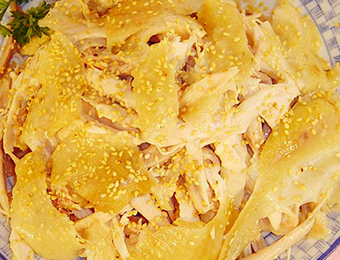 手撕鸡是一道中国的地方传统名菜,属于川式凉菜。一般选用三黄鸡为原料,其中,外皮金黄可谓手撕鸡的卖点之一,在金黄的鸡皮上,晶莹而散发甘香,肉质细腻,油脂适中,鲜美含汁,嚼之既不油腻也不柴硬,并带有浓郁的鲜香味,直至骨髓。较之于一般的鸡肉美食,手撕鸡较为干爽,性质比较温和,适宜不同人群食用。