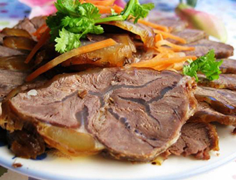 卤牛肉是指用卤的方法处理出来的牛肉,煮熟煮逶后,颜色棕黄,表面有光泽,无糊焦,不牙碜,酱香味浓,可口。卤牛肉有补中益气、滋养脾胃、强健筋骨、化痰息风、止渴止涎之功效,适宜于中气下隐、气短体虚、筋骨酸软、贫血久病及面黄目眩之人食用。