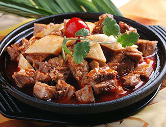 牛肉砂锅的做法:将牛肉洗净,剁成4厘米见方的块,放入锅内,加精盐、料酒、葱段、姜块、胡椒粉、清水烧开,将牛肉煮熟透(汤留用)捞出沥干水分,将花淑、白糖、酱油拌匀,放入油锅内炸至发红,捞入砂锅中添牛肉汤,加味精调好口味,放入青笋条焖熟即可。牛肉砂锅功效:健脾开胃,补充营养。