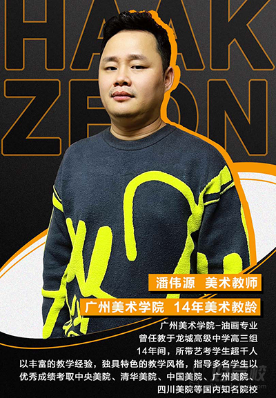 曾任教于龙城高级中学高三组14年间,所带艺考学生超千人以丰富的教学经验,独具特色的教学风格,指导多名学生以优秀成绩考取中央美院、清华美院、中国美院、广州美院、四川美院等国内知名院校