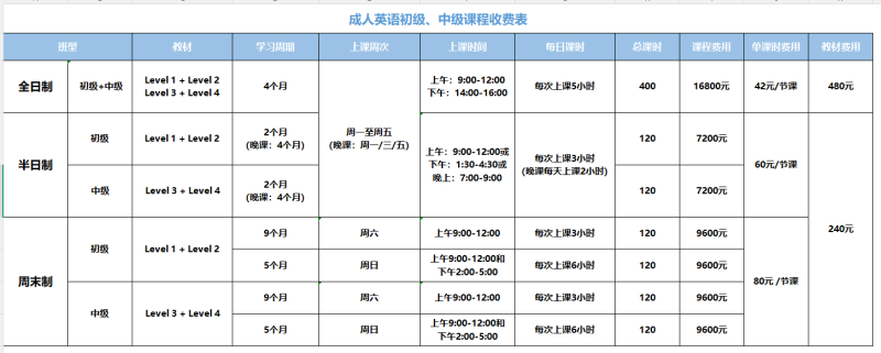从Level 1的基础入门到Level 4的托业强化,课程内容逐步从生活化场景过渡到复杂的商务环境,旨在培养学员在实际工作和社交场景中自信、流利地使用英语的能力。