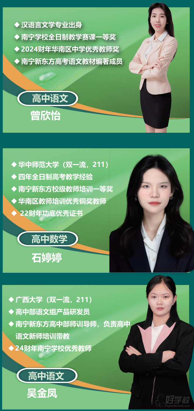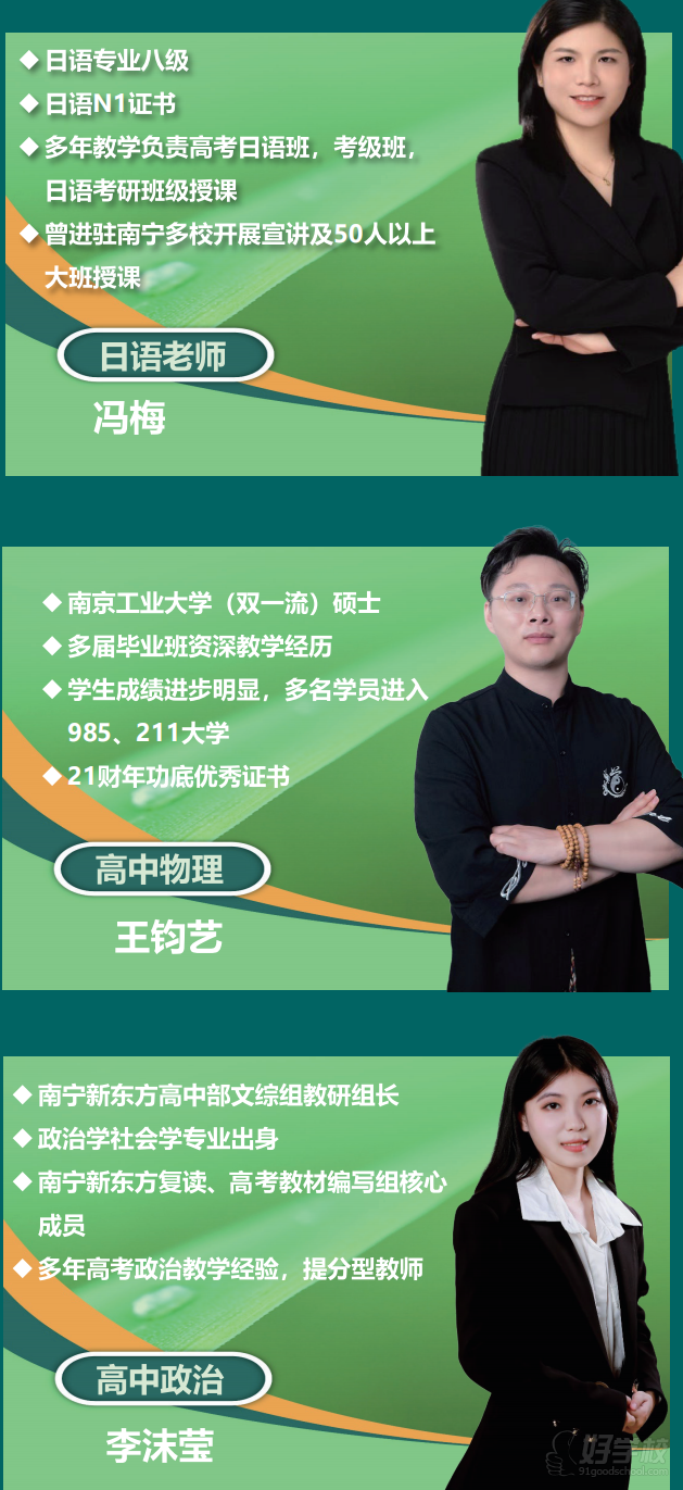 新东方 :老师好!高考全日制教师平均教龄6年+,高学历占比高;教学经验丰富,资历深厚;课上教学内容有趣又有料,课下答疑解惑耐心又细心;深受学生喜欢、家长好评!