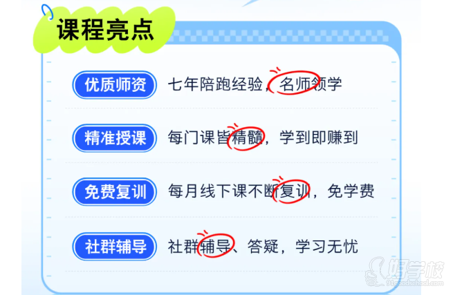 专属内部学员社群:加入各授课老师的内部学员群,学习中遇到的疑问可及时与老师、同学沟通交流,解决学习后顾之忧,形成互助共进的学习氛围。
