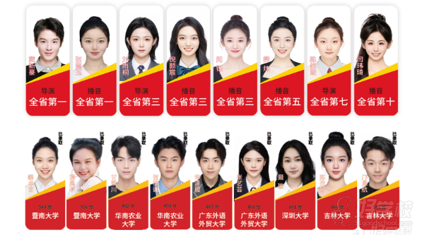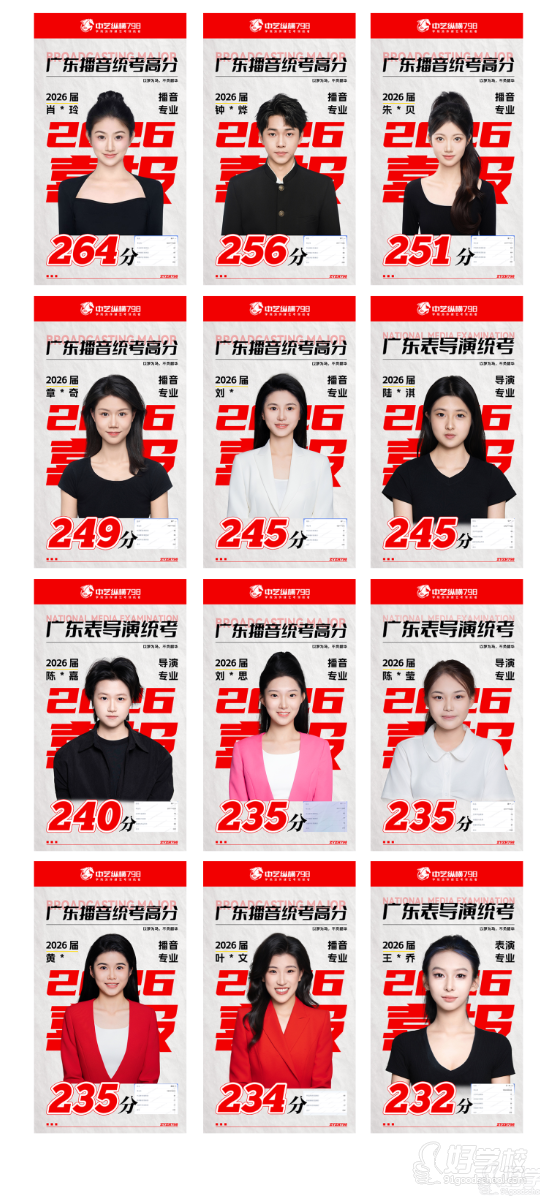 2026年广东统考,中艺纵横798再续辉煌。播音专业18人参考,高过线,全省裸分前十一名占3席!表导演专业平均分230+,过线率高!