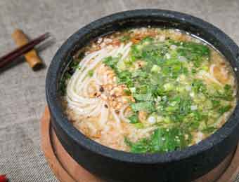 过桥米线是云南滇南地区特有的小吃,属滇菜系,起源于蒙自地区,由汤料、佐料、生的猪里脊肉片、鸡脯肉片、乌鱼片及五成熟的猪腰片、肚头片、水发鱿鱼片制作而成。辅料有来过的豌豆尖、韭菜,以及芫荽、葱丝、草芽丝、姜丝、玉兰片、氽过的豆腐皮;四是主食,即用水略烫过的米线。