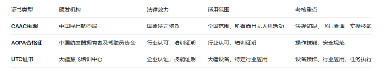 组合发展:许多专业飞手选择“CAAC执照+UTC行业认证”的组合,既满足法律要求,又具备行业应用专长。