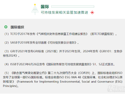 导读:ESG(环境、社会和公司治理)在全球可持续发展浪潮中越来越重要,各国政策也在不断推动其落地。今天来给大家梳理下国内外 ESG 监管政策~