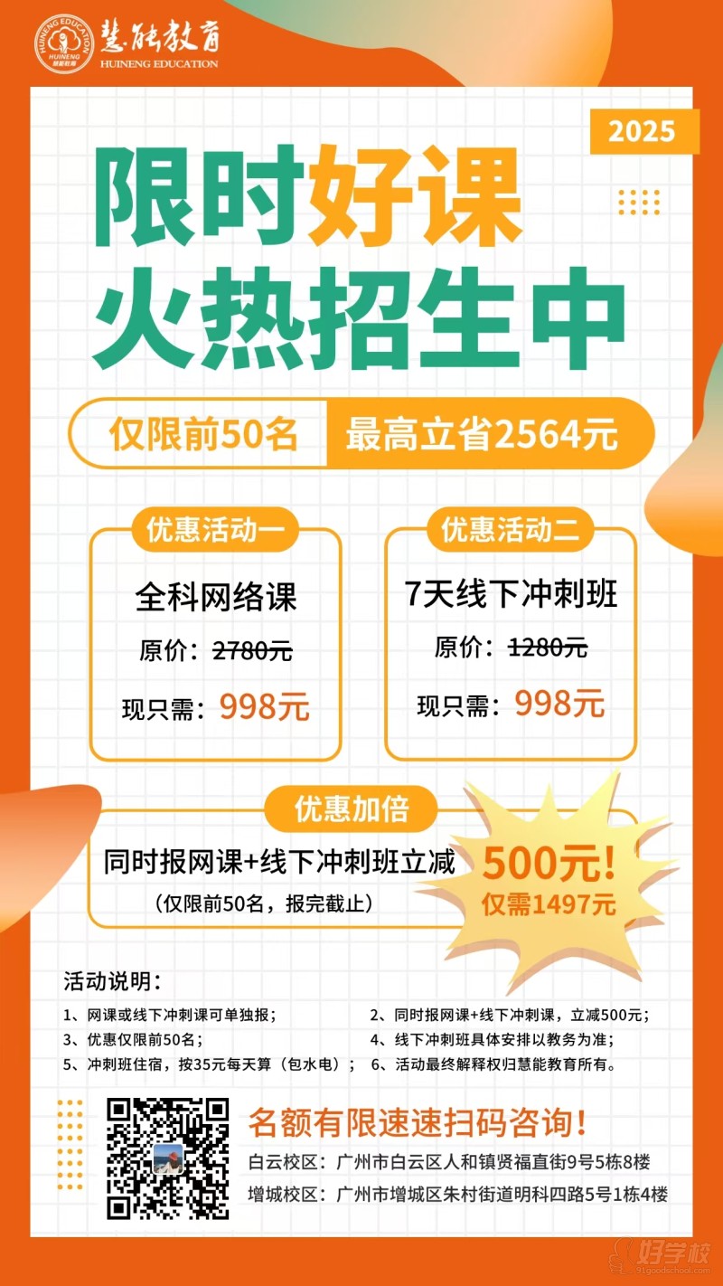 优惠加倍:同时报网课+线下冲刺班,立减500元。
