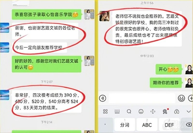 艺路文铖的学员好评,是其提分实力的生动注脚:有学员期初仅 188 分,经两个月针对性辅导跃过本科线,家长直言 “从崩溃哭学到稳步进步,孩子的逆袭离不开老师的不放弃”;83 天里,某学员四次模考从 390 分攀升至 524 分,最终录取心怡音乐学院,坦言 “冲刺时光充实又安心,老师的负责让提分有了底气”;还有家长感慨,从文化课冲刺到志愿填报,机构全程 1 对 1 指导,让自己免于当志愿 “研究生”,省心又踏实。