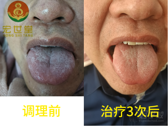 男,65岁,患者,华陀颂柔筋术三次舌象前后对比。
