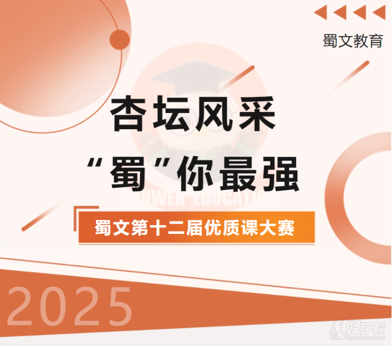 导读:教师赛课,不仅是技艺的切磋,更是对教育初心的坚守!2025年9月22日-25日。蜀文教育第十二届优质课大赛我们搭建起专属舞台,让才华尽情展示,让灵感相互碰撞!这,就是我们追求卓越的硬核态度!