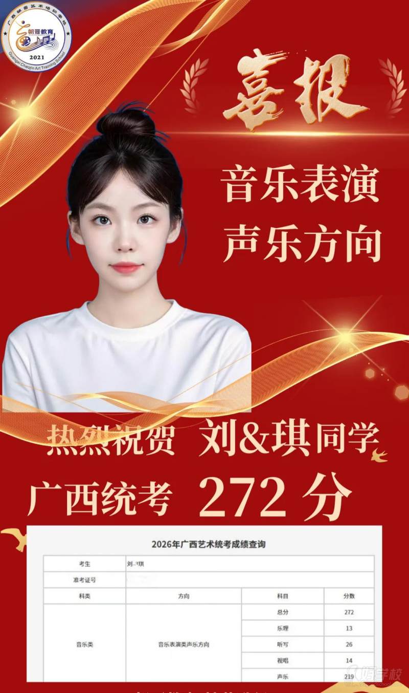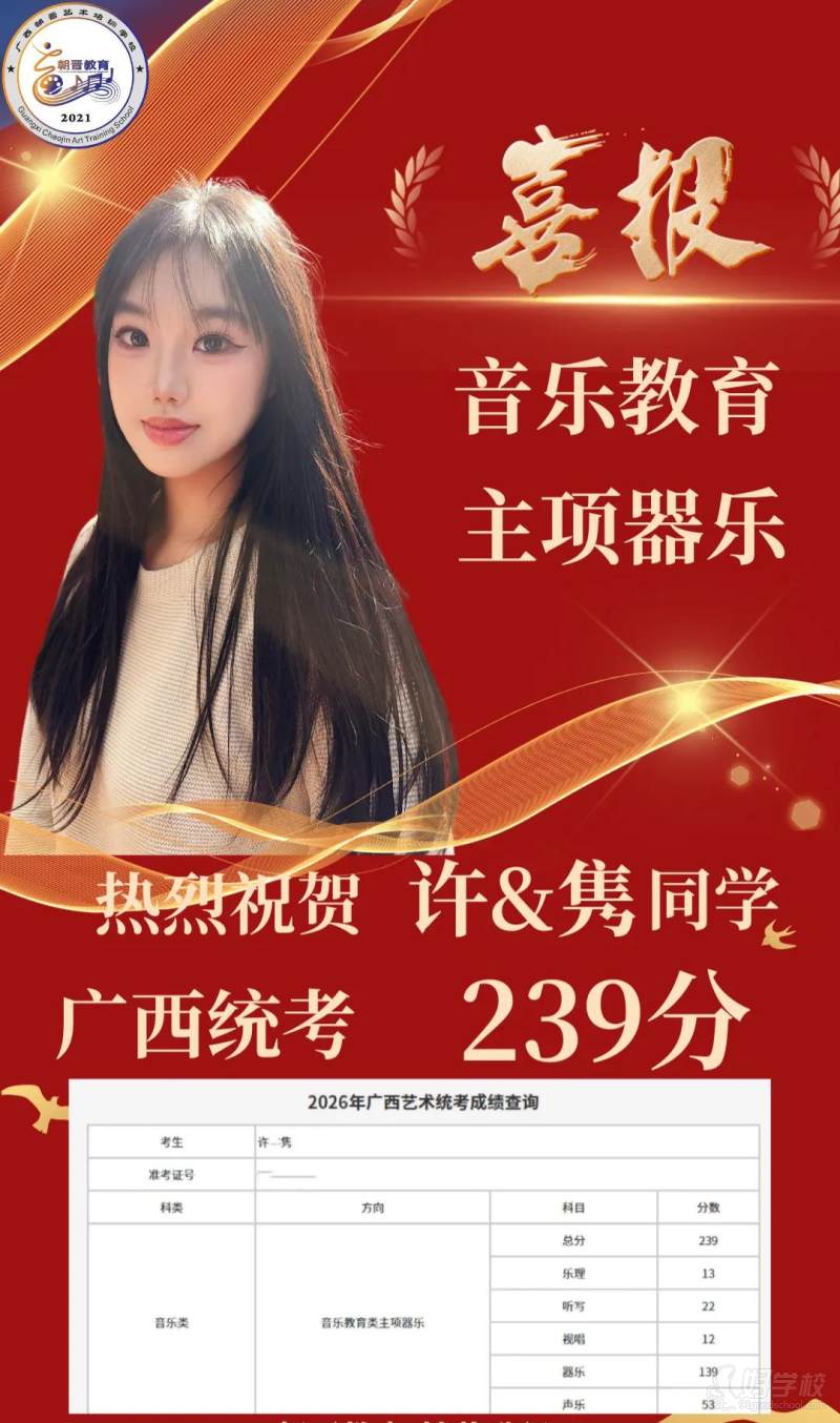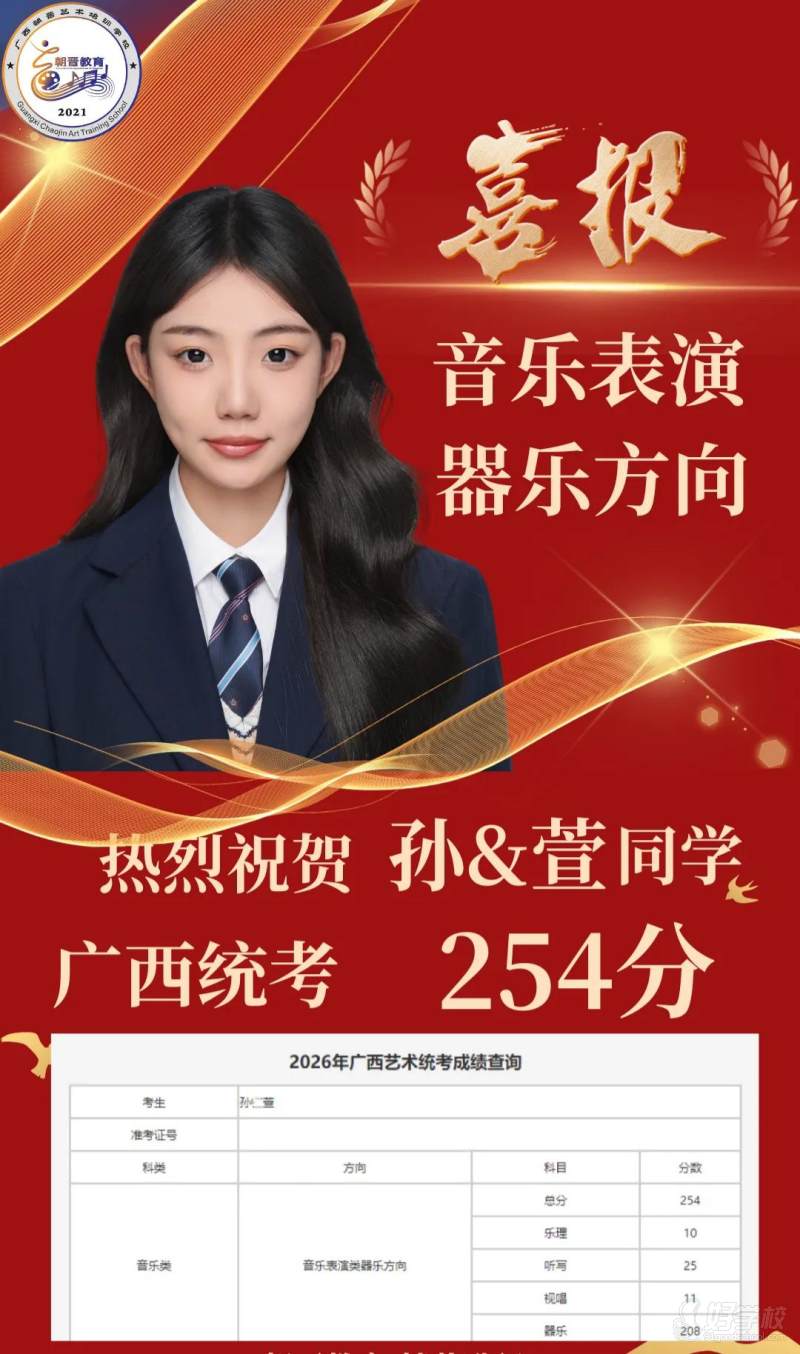 热烈祝贺广西朝晋艺术培训学校2026届艺术统考再创辉煌,三大专业齐头并进,用硬核成绩书写艺考传奇!
