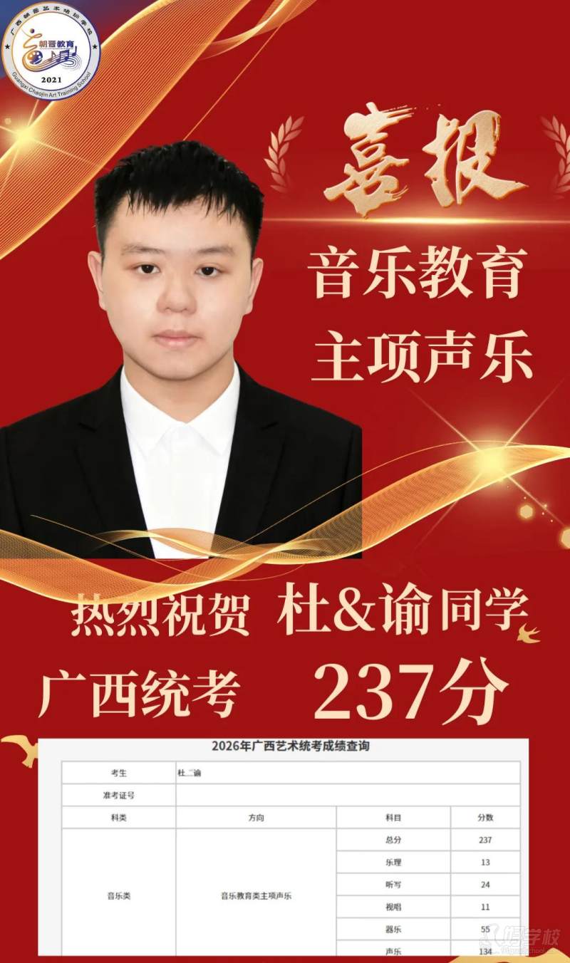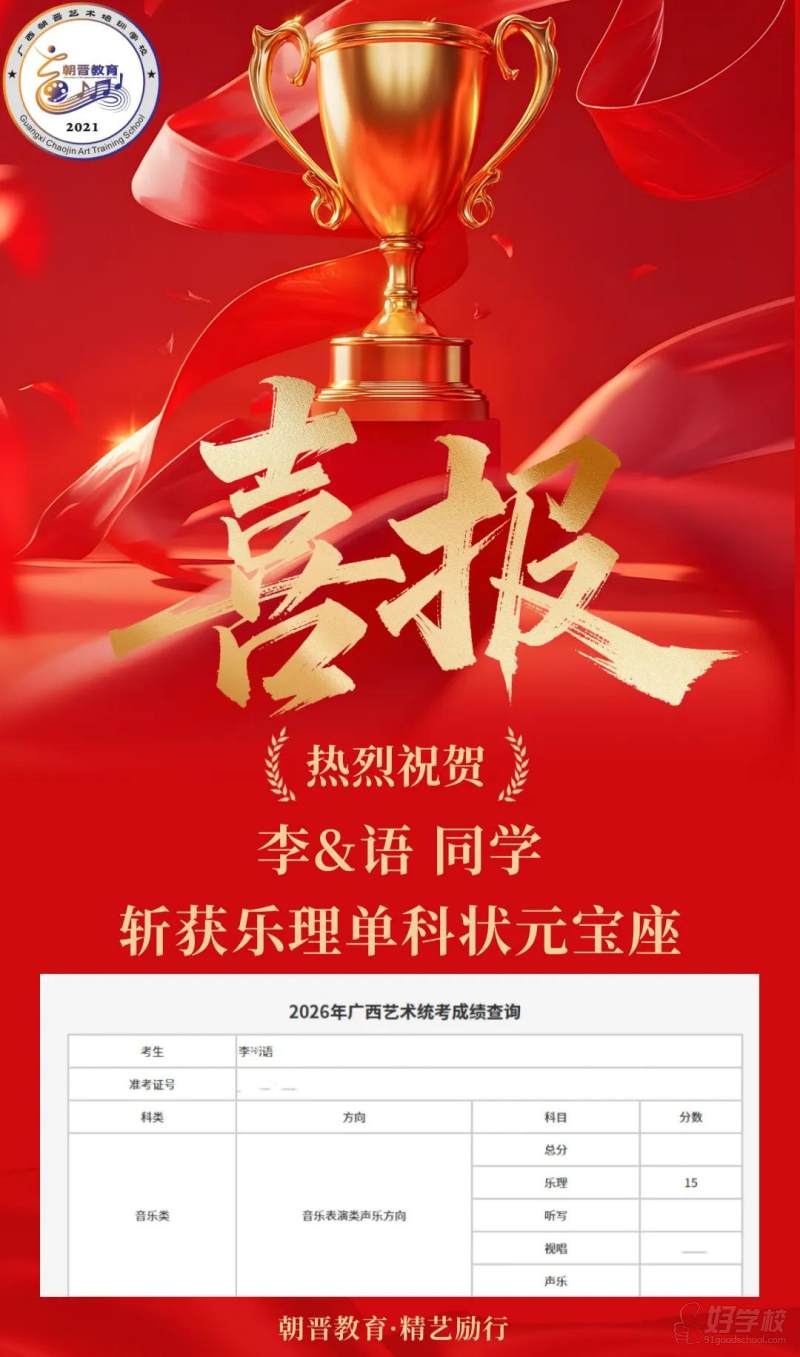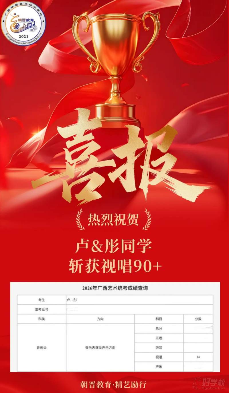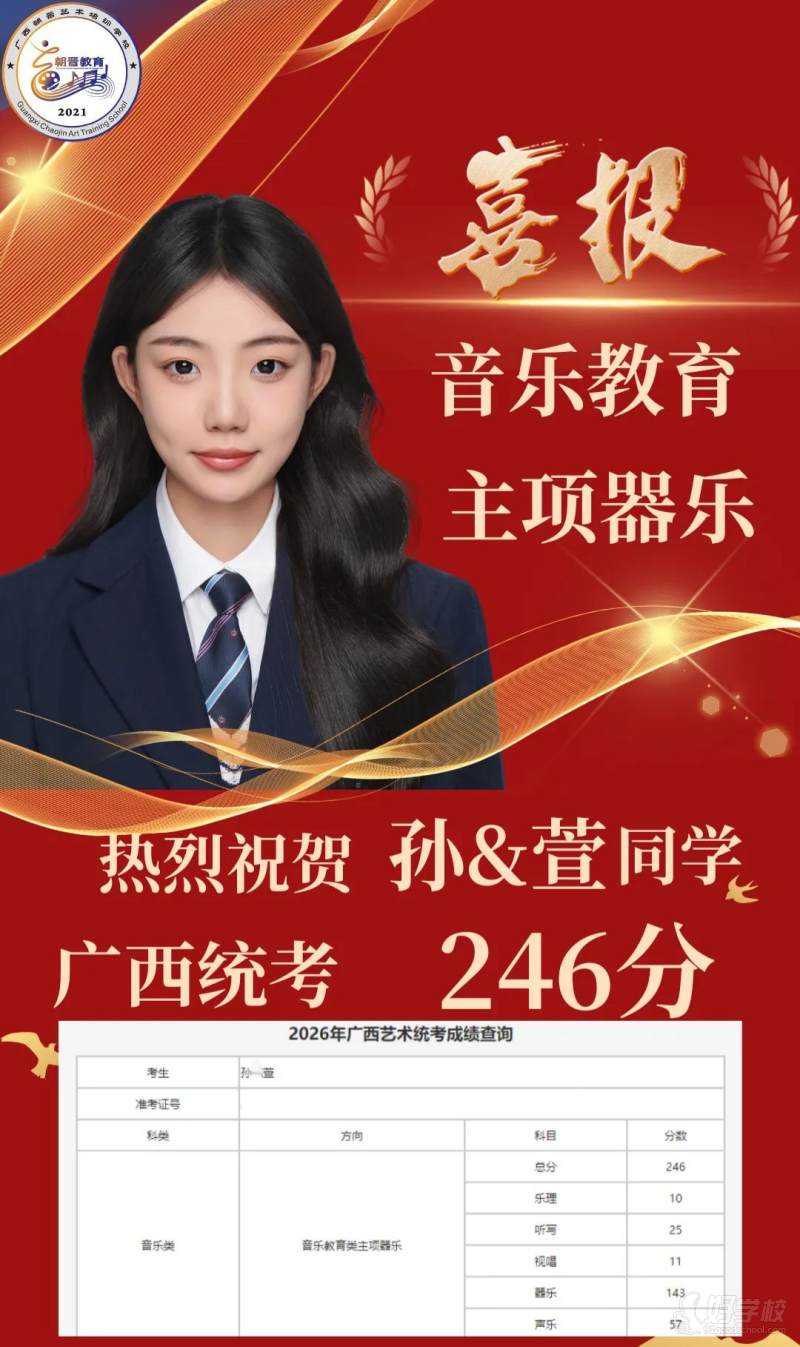 热烈祝贺广西朝晋艺术培训学校2026届艺术统考再创辉煌,三大专业齐头并进,用硬核成绩书写艺考传奇!