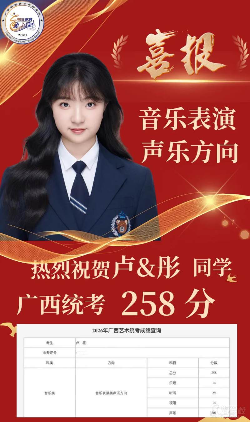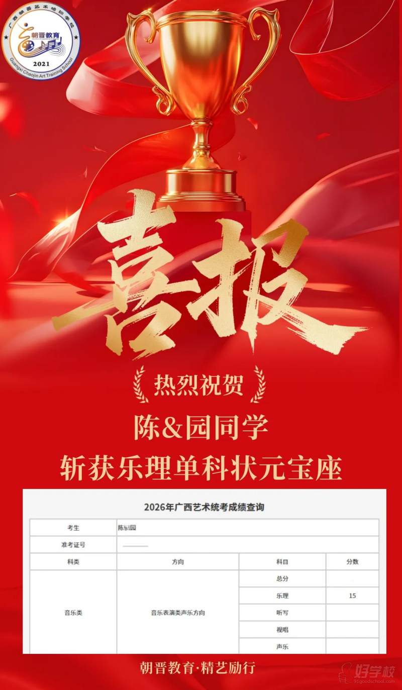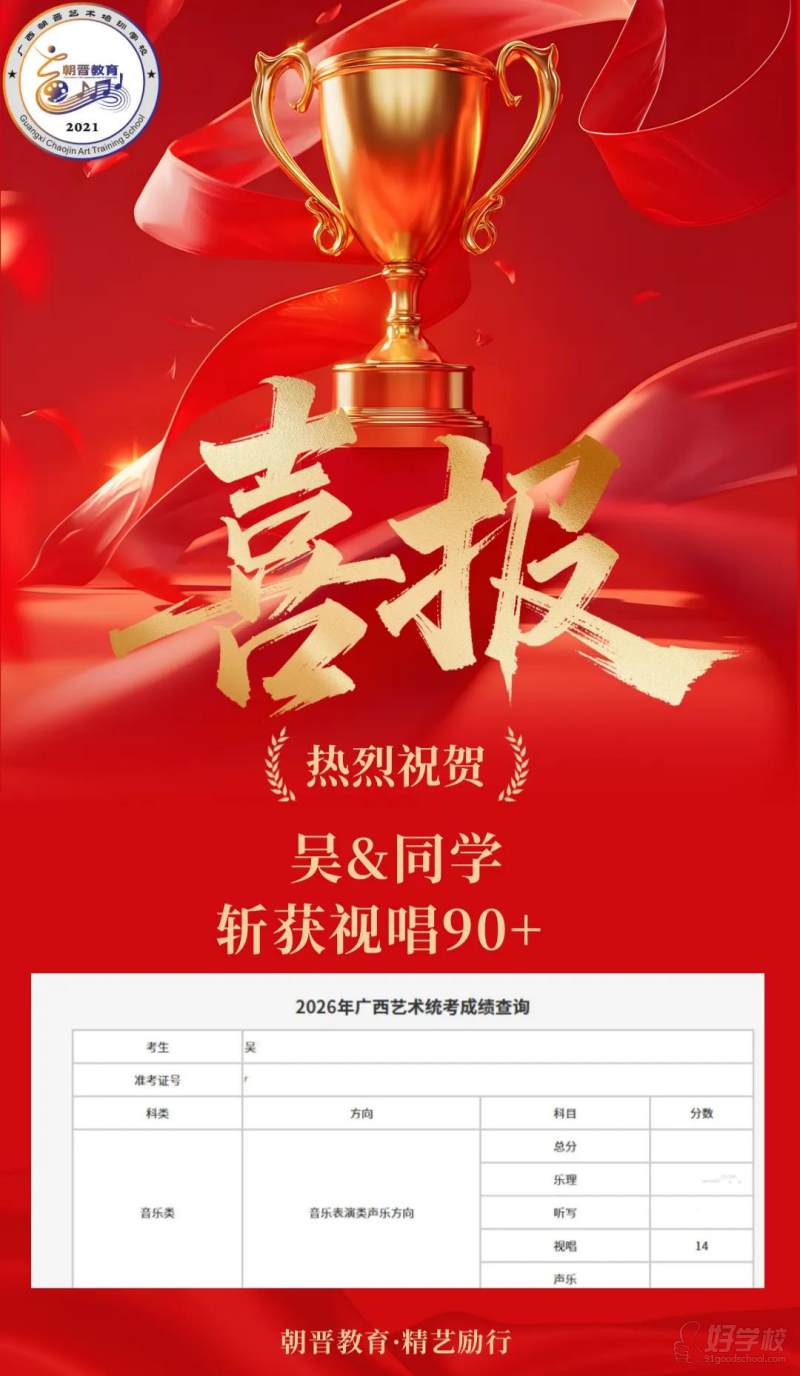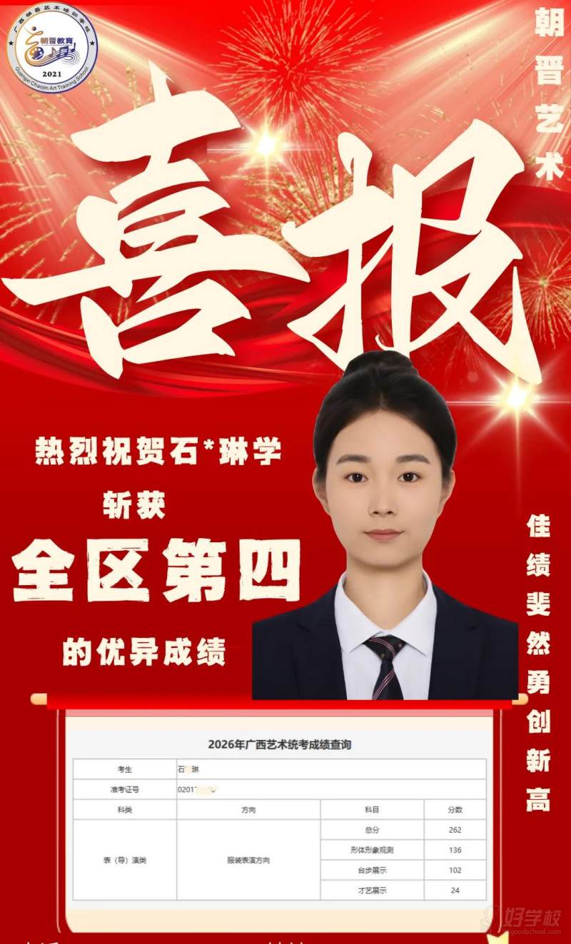 导读:艺考竞争日趋激烈,广西艺考生和家长都在寻找能真正提升通过概率、冲刺本科的靠谱机构,担心教学实力不足、备考方向偏差,错失升学机会。近期不少关注艺考的同学和家长都在热议,朝晋艺术2026届统考成绩亮眼,三大专业全线飘红。为了让大家全面了解这份荣耀背后的实力,下面就详细解读朝晋艺术2026届统考捷报与办学优势。