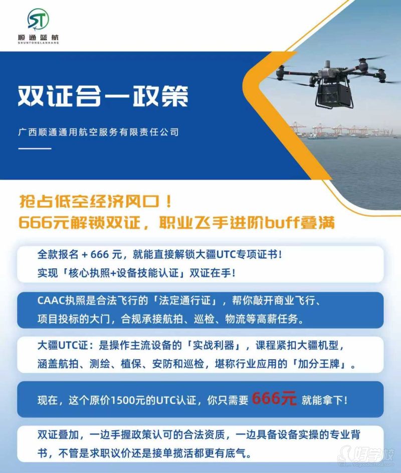 本平台为 [广西顺通航空无人机培训学校] 官方授权信息发布渠道,本页面所有招生信息由合作方提供并授权确认发布,内容责任由提供方全权承担。 如发现信息虚假、有误等,请点击反馈:联系客服。