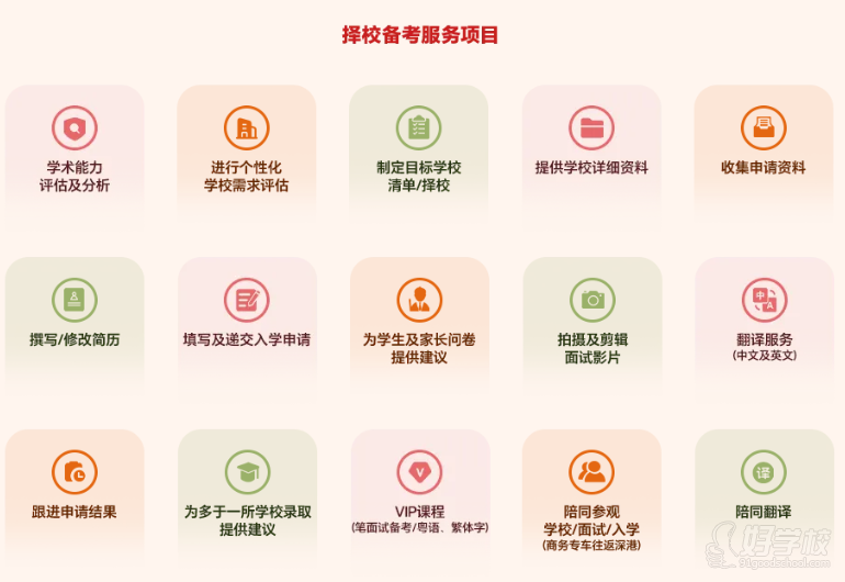 一站式择校备考服务:覆盖从学术评估、目标校规划、申请材料制作,到笔面试备考的全流程,适配多数家庭的完整升学需求;