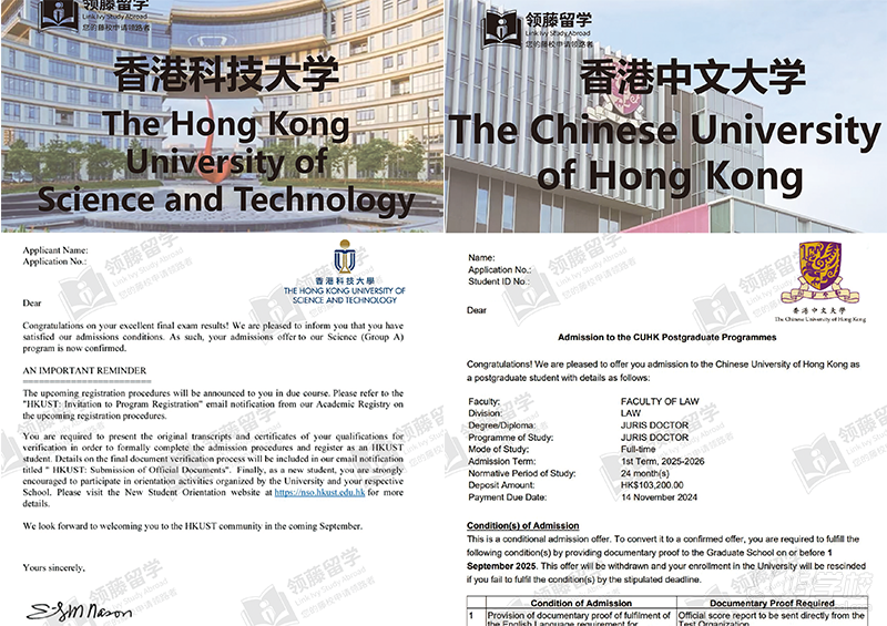 本次学员风采中,领藤留学的学员交出了亮眼答卷:中国香港地区的香港大学、香港理工大学、香港科技大学、香港中文大学,美国的耶鲁大学、麻省理工学院、纽约大学、斯坦福大学等知名院校,均向其学员发放了硕士、博士等研究生项目的录取 offer。