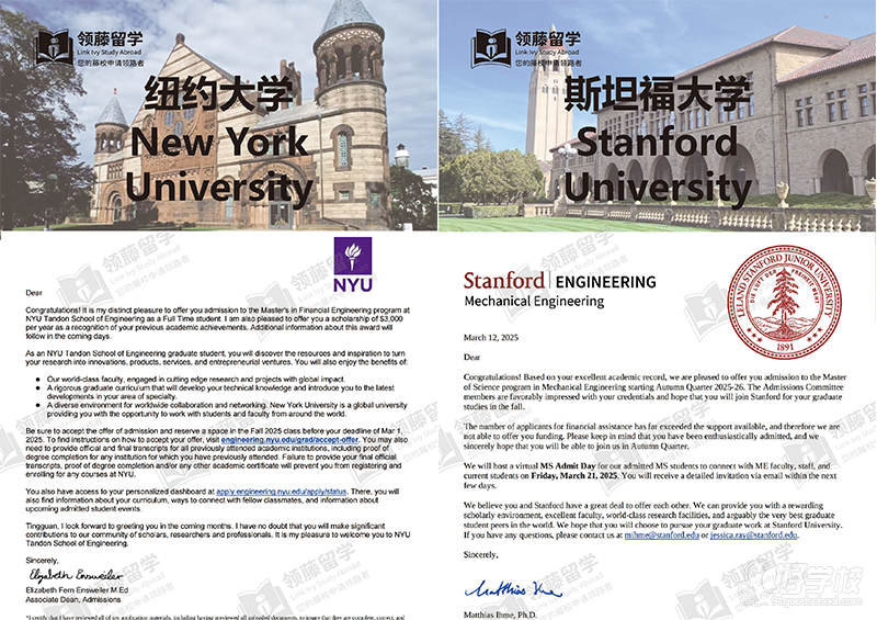 这些沉甸甸的 offer,是学员自身努力的回馈,更是领藤留学专业服务的具象体现 —— 从背景梳理到文书打磨,从院校沟通到流程把控,每一步都围绕 “冲刺梦校” 的目标推进。若你也正筹备海外院校申请、渴望敲开理想院校的大门,领藤留学的资深团队或许能为你提供适配的规划与支持,凭借其对海外院校的深度认知与经验积累,助你向梦中情校再进一步。