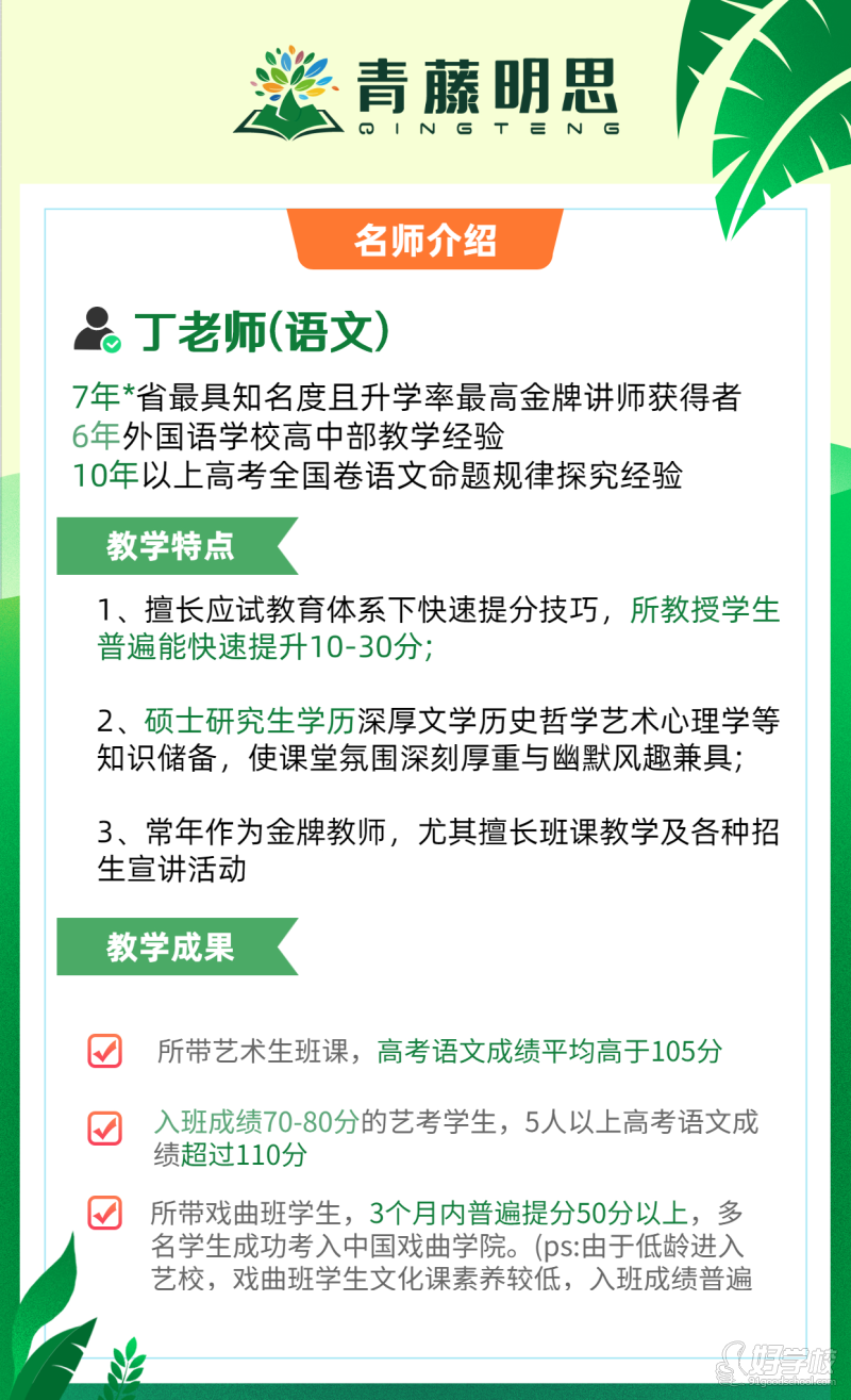 语文・丁老师:10 年 + 高考试题研究,艺术生提分 “领航者”