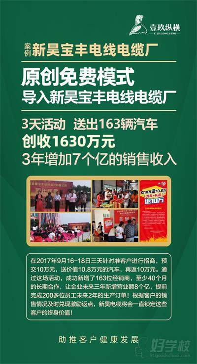 自2014年,壹玖正式涉足培训行业,总通过精准的市场细分与定位,首创《免费模式》。该模式以吃亏利他为核心,迅速吸引了海量客户,并孵化出众多企业家讲师。凭借企业家渠道,积累了丰富的商业实战案例。仅用一年时间,便荣登商业模式培训行业榜首,自此,壹玖在培训行业的传奇之旅正式启动航!2022年,壹玖纵横完成全面战略升级。公司坚守“助推客户健康发展”的企业使命和