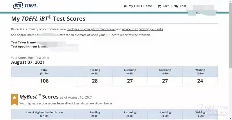 杨同学,美国高一,美国留学三年,托福考试数次,从刚出国门时的托福口语18分,到后来在美国考试,数次都是徘徊在23分左右,经过肖老师一对一为期三个星期的远程在线辅导,口语考到27分,总分考到106分,可以说是效果显著,并充满信心申请世界名校---斯坦福大学