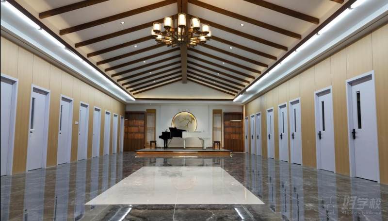 学校占地面积接近10000平米,其中教学面积6000平,配备专业的教室、琴房、汇报厅、24小时热水空调,独立卫浴,私密太空舱上下铺。