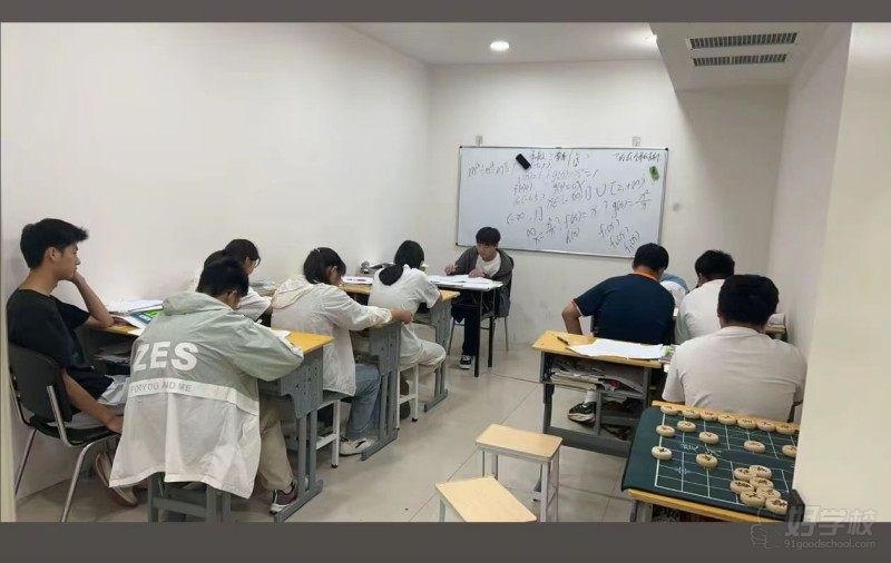 文化课教学区里,学生们围坐在课桌前专注投入,白板上密密麻麻的知识点、摊开的练习册,透着扎实的课堂节奏;角落摆放的象棋棋盘,又让课余时间多了几分轻松的互动,既能确保知识学习的密度,也兼顾了学习间隙的放松调节。