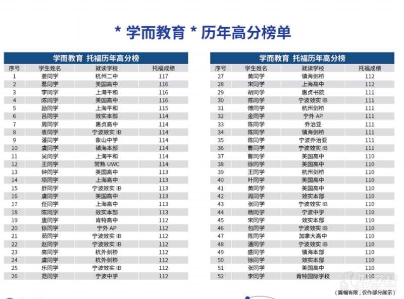 从成立到现在的15年时间里,无数次地刷新宁波地区高分和平均分。拿下了宁波参加老SAT考试2200和宁波老SAT2340高分,实现了新SAT首考1550和1520的高分。到目前为止,众多学生取得了老SAT2200分、新SAT1450分、托福110分、雅思7分以上、AP5分、AlevelA*、IB7分的好成绩。