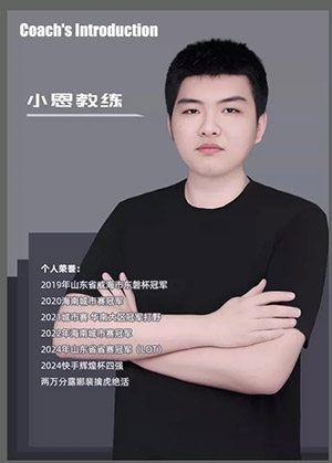 个人荣誉:2019 年山东省威海市东磐杯头名;2020 海南城市赛头名;2021 城市赛华南大区头名打野;2022 年海南城市赛头名;2024 年山东省省赛头名(LOT);2024 快手辉煌杯四强;两万分露娜裴擒虎绝活。