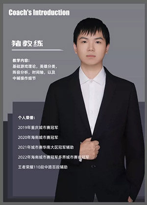 个人荣誉:2019 年重庆城市赛头名;2020 年海南城市赛头名;2021 年城市赛华南大区头名辅助;2022 年海南城市赛头名多界城市赛省头名;王者荣耀 110 段中路百段辅助。