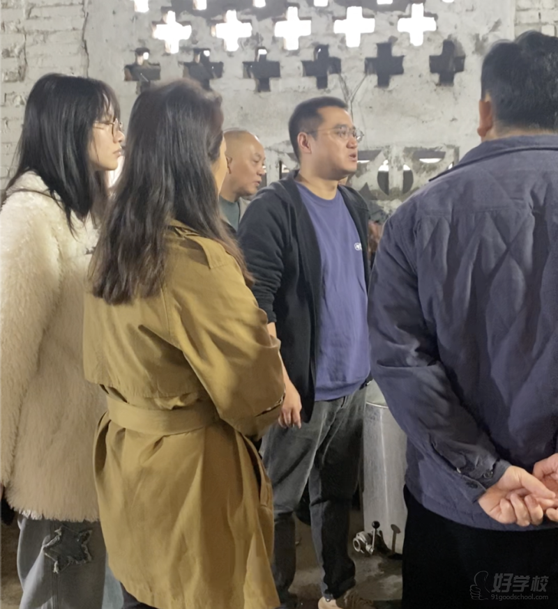 中试车间结束后,王老师带领学员前往天府酒厂酿酒车间,感受规模化车间的新工艺操作,现场进行大生产的酿酒操作,学习正规酒厂的生产方式。