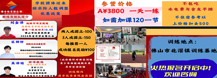本平台为 [佛山博奇体育] 官方授权信息发布渠道,本页面所有招生信息由合作方提供并授权确认发布,内容责任由提供方全权承担。 如发现信息虚假、有误等,请点击反馈:联系客服。
