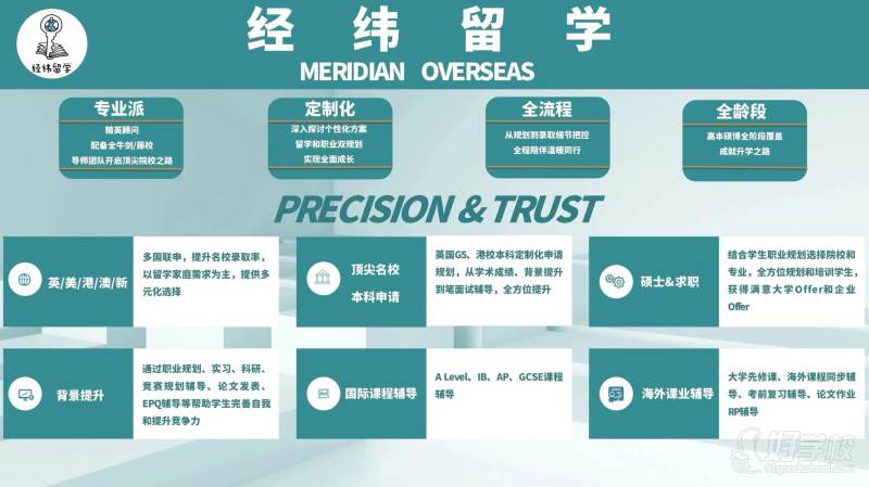 服务宗旨:以学生为中心,提供从留学规划到申请落地的一站式服务,确保学生在留学过程中得到专业、贴心的支持,让留学之路更加顺畅。