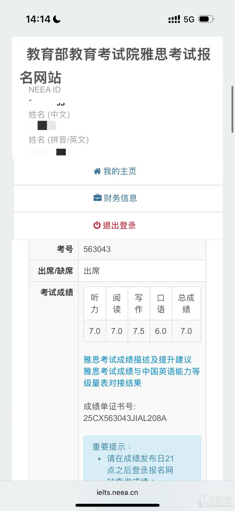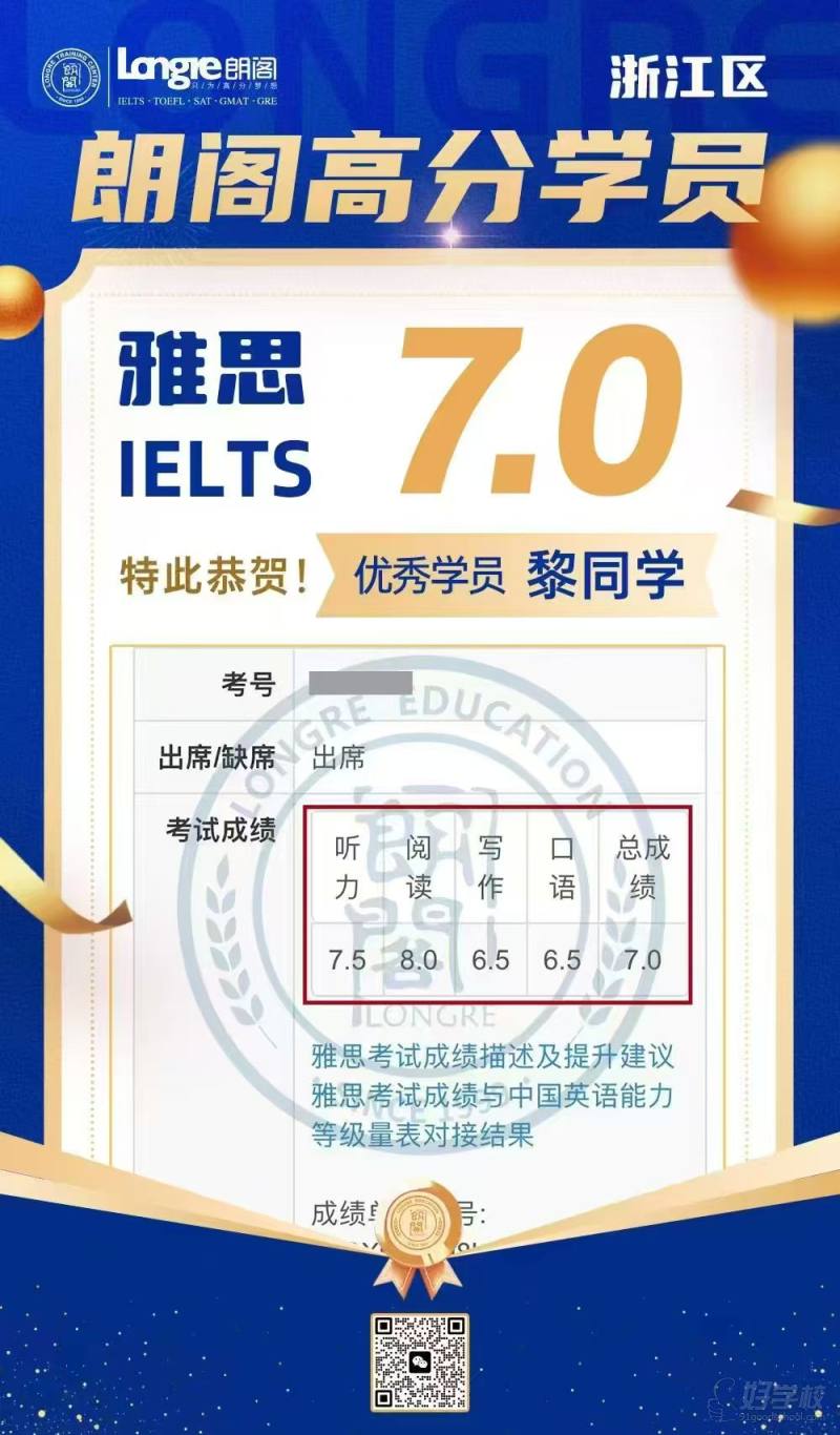 浙大本科,伦敦大学学院(英)TESOL硕士;雅思7.5,阅读单项满分,听力8.0,写作7.5: