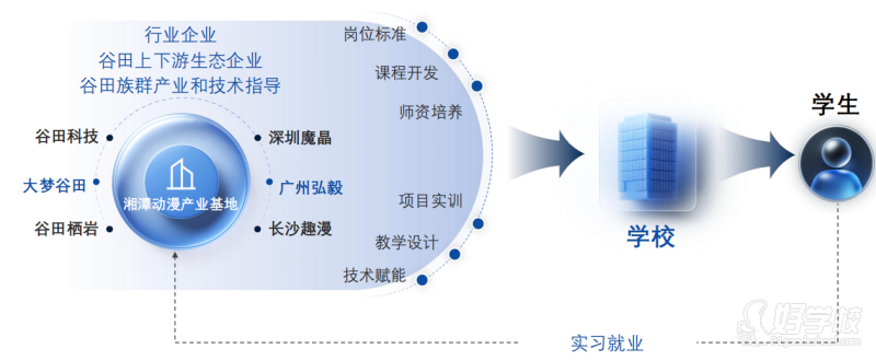 湘潭谷田艺设职业技能培训学校是一所面向16-25岁的群体,主打艺术设计类,动画游戏师以及影视制作师的培养的学校。学成考核达标推荐到谷田网络科技有限公司从事专业对口工作。特别优秀者,内推到腾讯,网易等大厂入职。