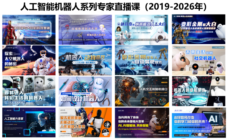 2019年开始,里兰开始针对全球的中小学生,上线人工智能机器人系列直播课,该系列直播课由斯坦福蒋里博士亲自直播讲授,采用1:1中英文双语的方式,每一年都会开设两个新主题的课程,旨在讲授最前沿的科技。目前开设过的课程有:《钢铁侠和大白的科技奥秘》-动力外骨骼、《从蜘蛛侠到小天使——爬墙机器人的进化》、《变形金刚和大白-人形机器人和机器视觉》、《变形金刚汽车人与自动驾驶技术》、《从达芬奇和纳米机器人到大白》、《探索太空机器人的秘密》、《机器人动物世界——上天入海的机器人》、《未来生活中的社交机器人》、《即将进入生活中的机器人》、《如何设计机器人》、《人机交互:大语言模型、脑机接口(16星期,32课时) 》、《自动驾驶与机器人的感知系统---与AI一起学》、《人工智能大变革》、《擎天柱引领人形机器人发展》。涉及到的内容有动力外骨骼、软体机器人、自重构模块化机器人、蟑螂机器人、爬墙机器人、人型机器人、医疗机器人、月球车、火星车、太空机器人、自动驾驶汽车、社交机器人等等各种各样前沿实验室的机器人,还有ChatGPT、Deepseek、大语言模型、卷积神经网络、图像识别、自由度、人机交互、脑机接口等前沿科技的底层原理。