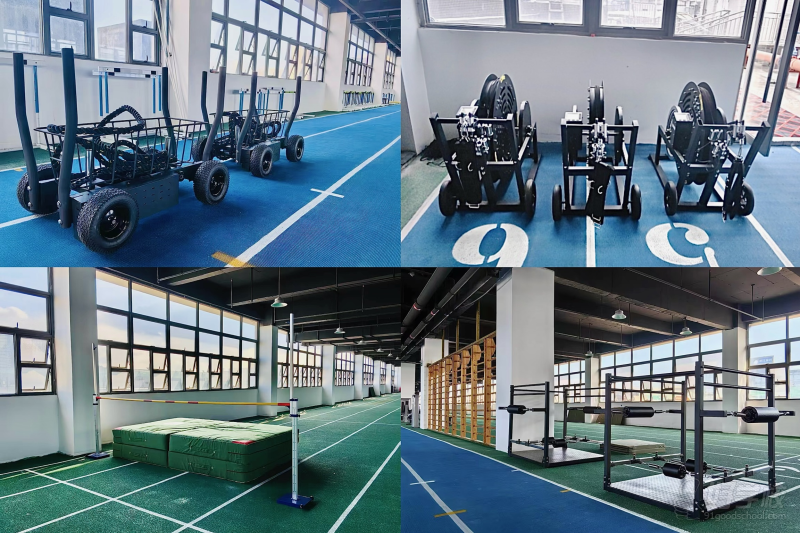 2、拥有专业的训练设备。1080阻力牵引机、摆腿器、铅球训练机、阻力坦克车、心率监控系统、力量系统、电计时等各种专业训练设备