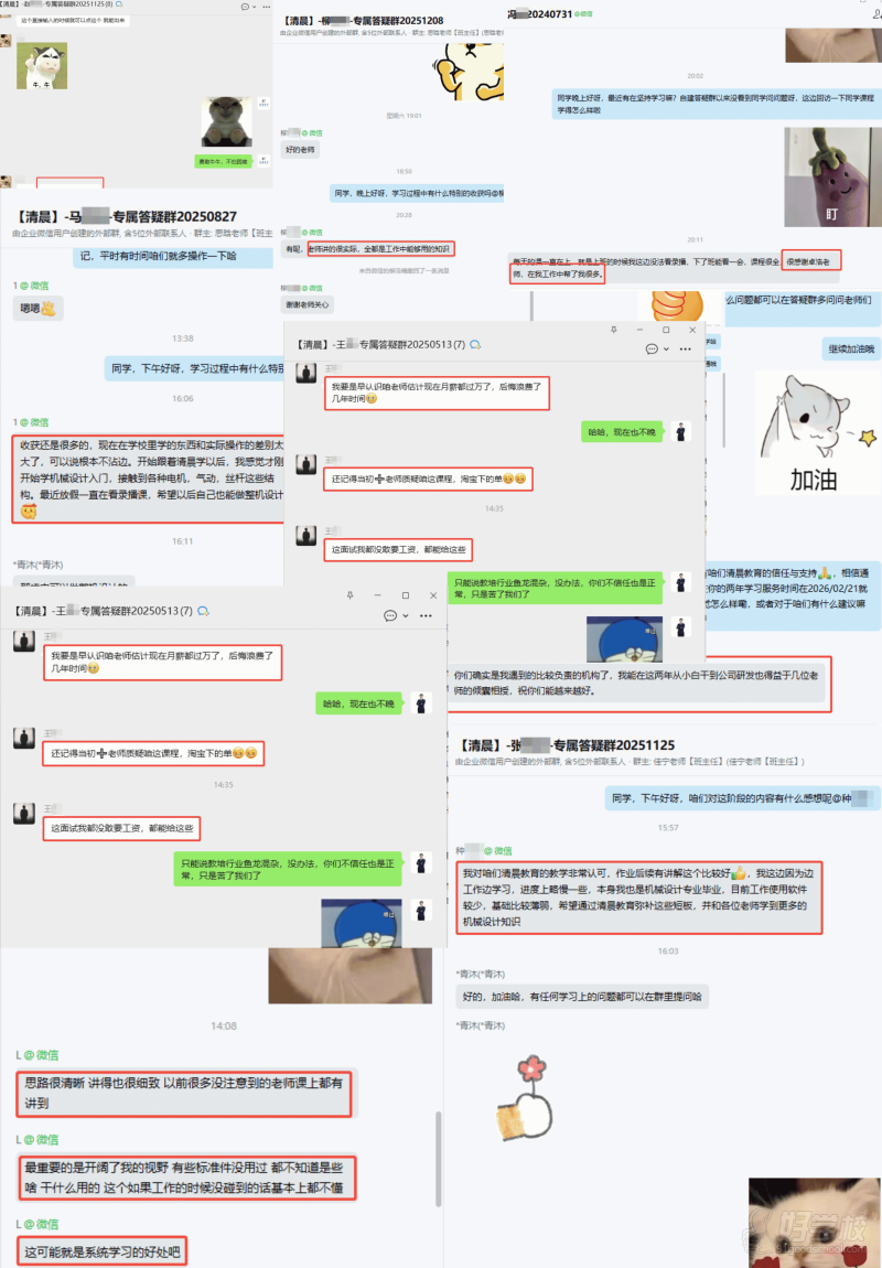 我们的授课老师均来自一线设计岗位,长期参与企业真实设计项目,具备扎实的 整机设计与项目落地经验。同时深耕线上机械设计教育多年,能够将企业级设计 逻辑与高效教学方法相结合,帮助学员真正掌握可落地的设计能力。