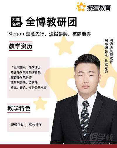教学资历:“五院四系”法学博士知名法学院本硕博背景高校法学院讲师深耕刑诉法、监察法应试、理论、实务经验丰富
