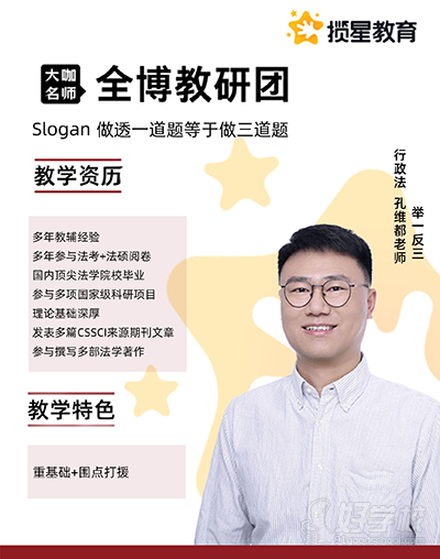 讲解条理清晰,善于启发学员,注重底层逻辑与题目角度变化,自成一派的冷幽默