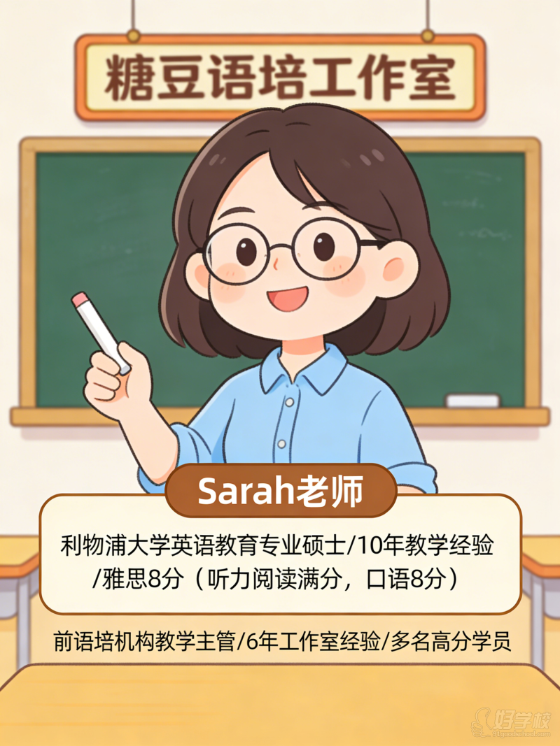 工作室所有授课老师,均为与创始人Sarah长期合作的固定师资,雅思8分是入职基本门槛,教学经验扎实、功底过硬。对每一位学生认真负责、耐心陪伴,不敷衍、不划水,早已是团队的日常标准。
