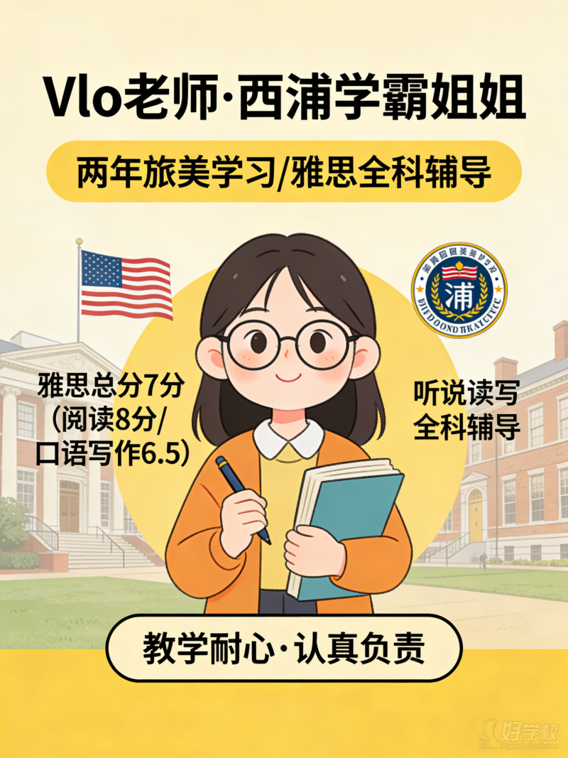 西浦学霸姐姐,两年旅美学习经历。雅思总分7分,阅读8分,口语写作6.5,听说读写全科辅导,教学耐心,认真负责。