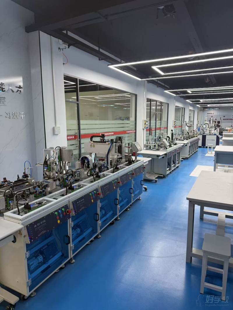 鸿富技加智能制造(深圳)实训基地打造了高标准、高规格的智能制造实训环境,基地配备行业前沿的设备集群,拥有与远荣、三向同款的智能焊接机器人、西门子/汇川智能制造产线等千万级真实设备;搭建全真生产线模拟场景,还原中联重科智能制造产线,配置1:1装配工位与仓储物流系统;设立专业的设备维护实训中心,含工业机器人检测台架、智能制造工作站模拟装置等。实训区域功能划分清晰,教学区、实操区、实训区相互衔接,日均实操时长超6小时,为学员提供沉浸式、实战化的学习环境,同时基地配套完善的生活设施,满足学员日常学习与生活需求。