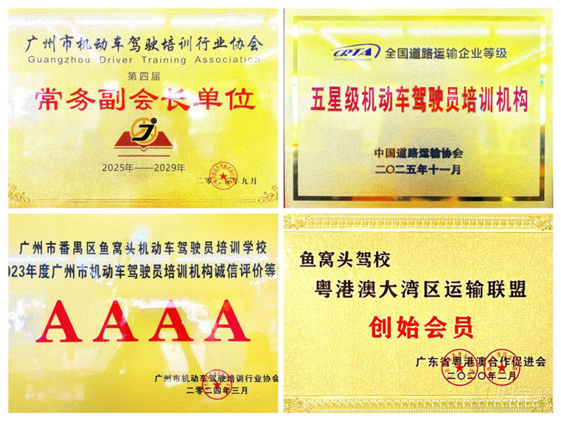广州市鱼窝头驾校,成立于 1994 年,建校至今已有 32 年历史。我校是全国五星级优质驾驶员培训机构、广州市驾培行业常务副会长单位、粤港澳大湾区运输联盟创始会员单位,已连续多年获得广州市 AAAA 级优质信誉驾校称号。同时,我校也是广州市道路运输从业资格证培训机构及考场,承办各类道路运输从业资格证的考试及培训业务,如:网约车、出租车、客运、货运、危运、押运、公交车等运输从业资格证。2025 年,我校获批民用无人机驾驶员训练合格证(CAAC),开展民用无人机驾驶员执照系统化培训。
