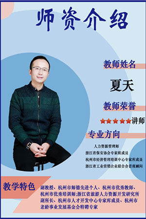 专业方向:人力资源管理师/浙江省保安协会专家组成员/杭州市经济管理培训中心专家库成员/浙江省工业营销企业联合会首席顾问